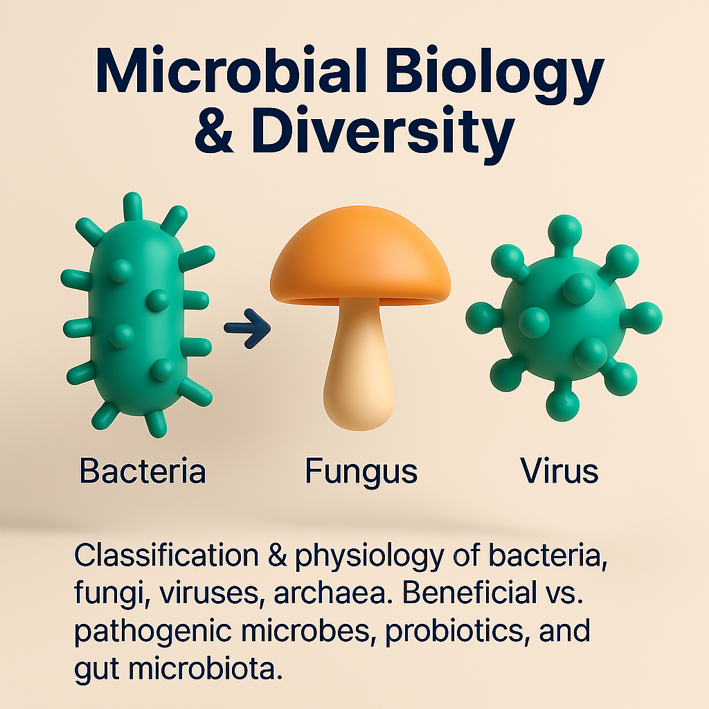🌍 What is Microbial Biology & Diversity? It’s the study of microorganisms — tiny life forms that you can’t see